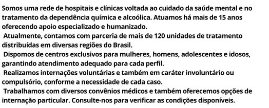 Há mais de 15 anos oferecendo atendimentos especializados com foco em cuidado integral, acolhimento e acompanhamento profissional de excelência